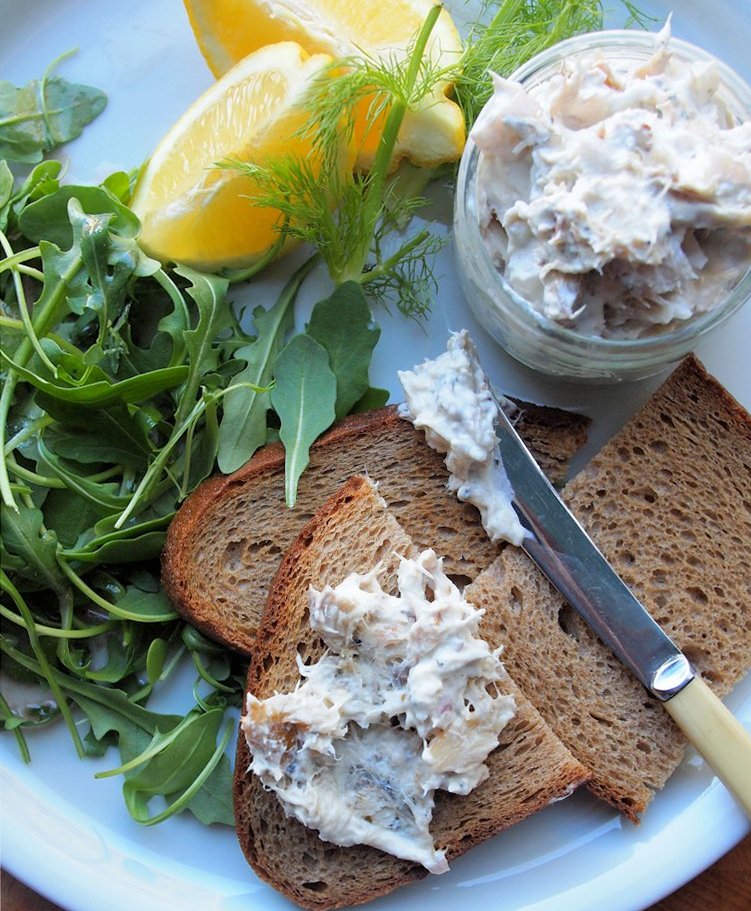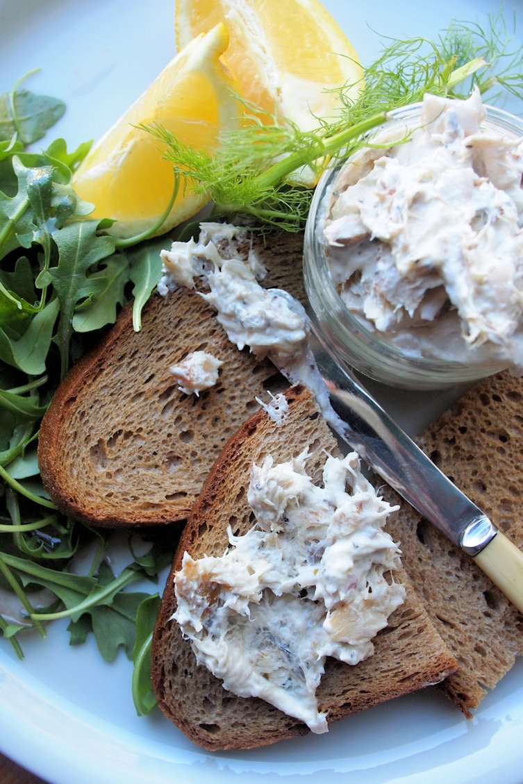 I whipped this recipe up really quickly, and there was enough for at least three meals for the two of us; I served it for lunch with some delectable home-made rye bread toasts as well as rocket leaves and extra fresh lemon quarters. The smoked peppered mackerel really makes this pâté and to be frank I could sit down with a spoon and eat it straight from the bowl! This would make a lovely starter for a dinner party as well as a stellar sandwich filling for picnics and posh lunch boxes. I was pleased with the balance of sharp lemon and rich herb cream cheese with the smokiness of the mackerel; however, you could lighten this up by adding low-fat cream cheese. It is better if served with rye bread, but brown bread or granary would also be a good partner.