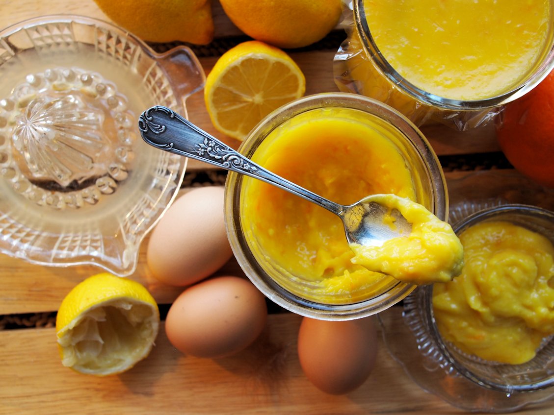 A deliciously tangy curd made with oranges and lemons, just like the nursery rhyme! Try to use unwaxed fruit for this curd.