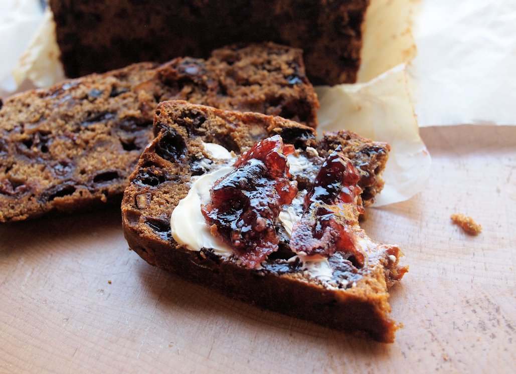 I love low-fat tea loaves – they make me wonder what the butter and sugar in Christmas cakes is actually contributing! Have never tried one with jam though, sounds so good.