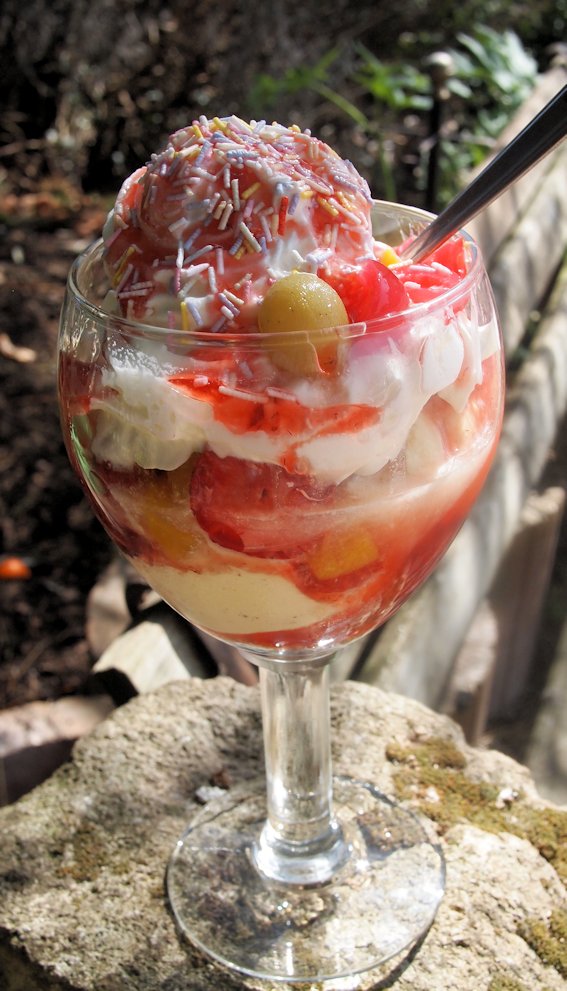 | Step 3 | You can vary this recipe to suit - different fruit and sauces, it is a moveable feast, along as you have a combination of ice cream, fruit. cream and sprinkles, the sky's the limit! |