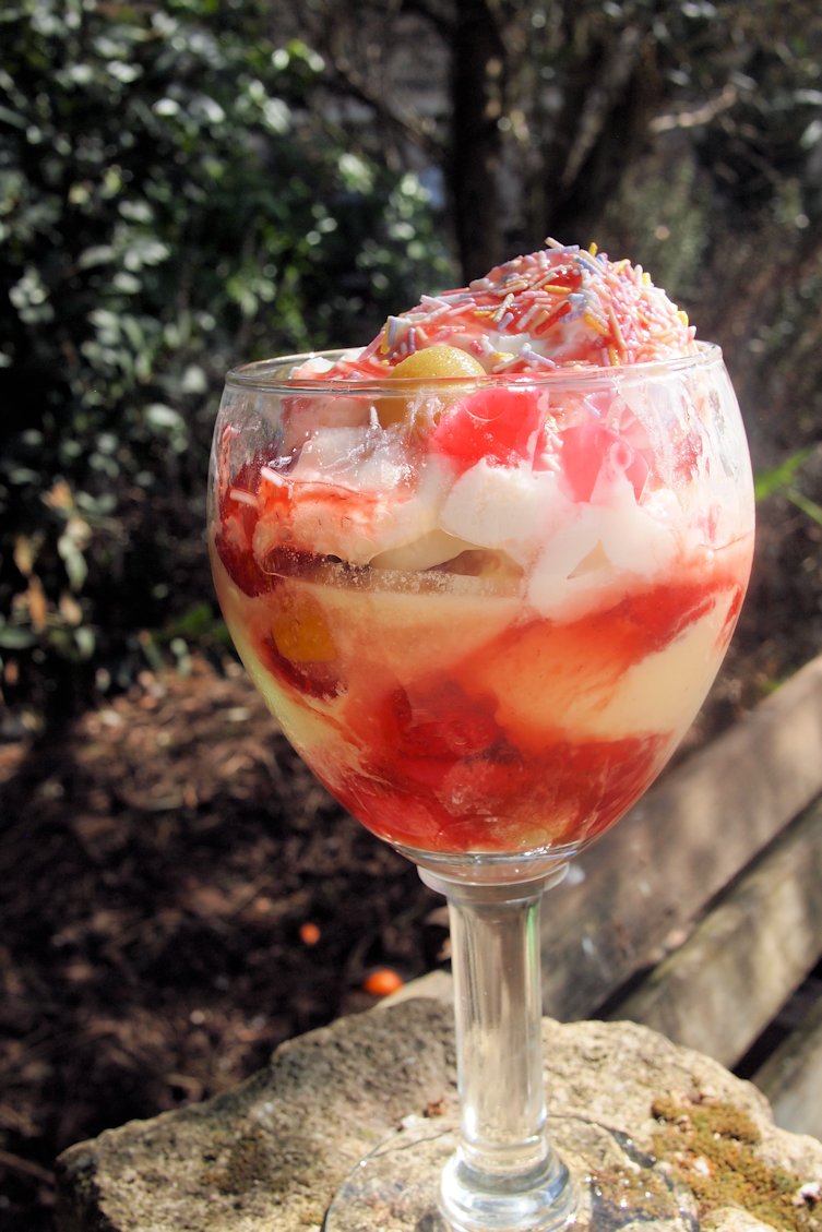 A taste of childhood and uncomplicated days, and a coveted dessert, a knickerbocker glory was reserved for special days such as birthdays and holidays at the seaside, but that didn’t stop me for asking or one every time I saw one on the menu! I also had a penchant for banana splits and ice cream sodas too…..the nearest I got to these decadent ice cream treats was when my grandfather gave me a threepenny piece or maybe a sixpence if I had been good, for the ice cream van when it came around………a real treat. Trips out to the shops with my grandmother often resulted in being treated to a ice cream wafer – a block of ice cream between two wafers, not what I would have picked, but I never turned one down! Other desired ice cream treats were those little tubs of whipped ice cream with nuts and syrup on top…….or a 99, whipped ice cream with a Cadbury’s flake stuck in it……..STILL a favourite even today.