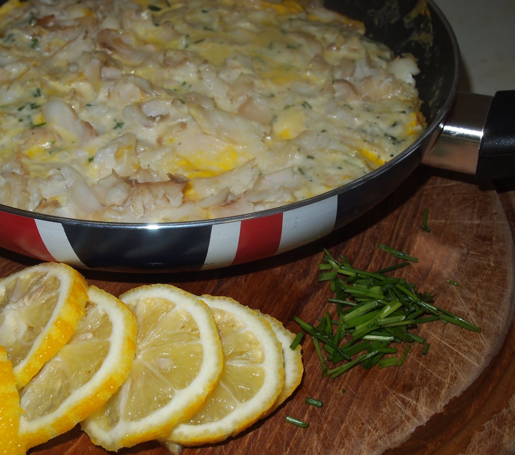 Sometimes it’s nice to rediscover a classic, and especially one that uses fine smoked haddock as its principal ingredient, as well as free-range eggs of course. I haven’t made an Omelette Arnold Bennett for a while now, and indeed it was not my intention to post this recipe today – I had other fishy posts to share, but, when I received a box of fresh Scottish fish from John and Delish Fish yesterday and saw that there were some smoked haddock fillets nestled amongst all of the other delicious packs of fish, tea time’s meal was set……it was to be an Omelette Arnold Bennett! This oddly named omelette is a wonderful classic in British culinary history; whilst staying at the Savoy Hotel in London during the 1920’s, the chefs perfected an omelette incorporating smoked haddock, Parmesan cheese and cream, which pleased the author so much he insisted on it being prepared wherever he travelled. The ‘Omelette Arnold Bennett’ has remained a Savoy standard dish ever since, and is beloved of all cooks who work in hotels and bed and breakfast establishments.
