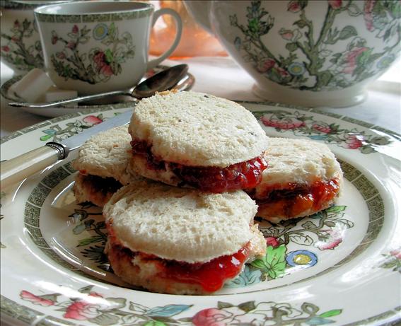 Delectable little jam penny sandwiches, perfect for a Royal tea party or for the children's tea or supper. I have used a seven grain sliced bread in my sandwiches as shown in the photo, and my home-made strawberry jam too!