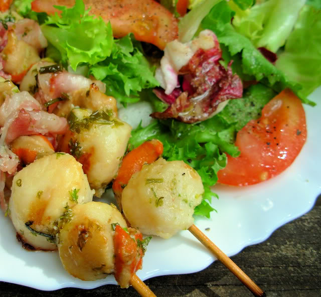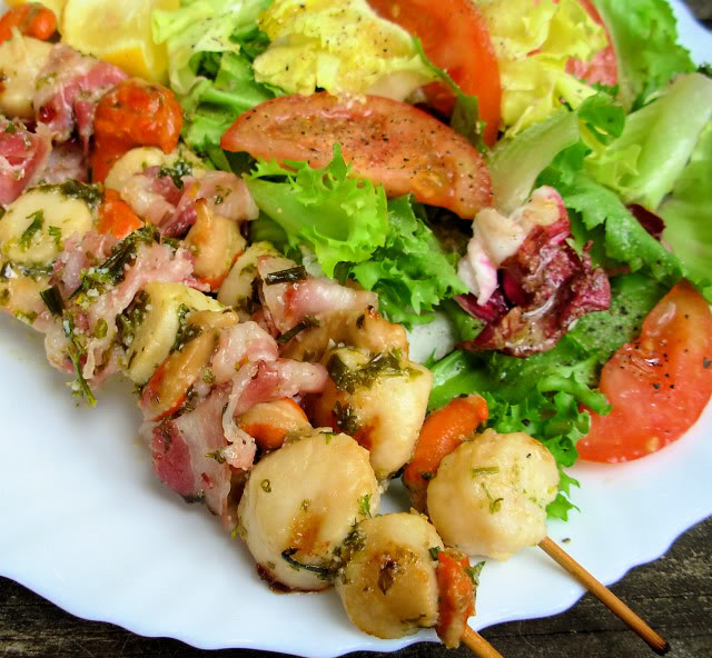 Herb Marinated BBQ Scallop & Bacon Skewers (Kebabs)