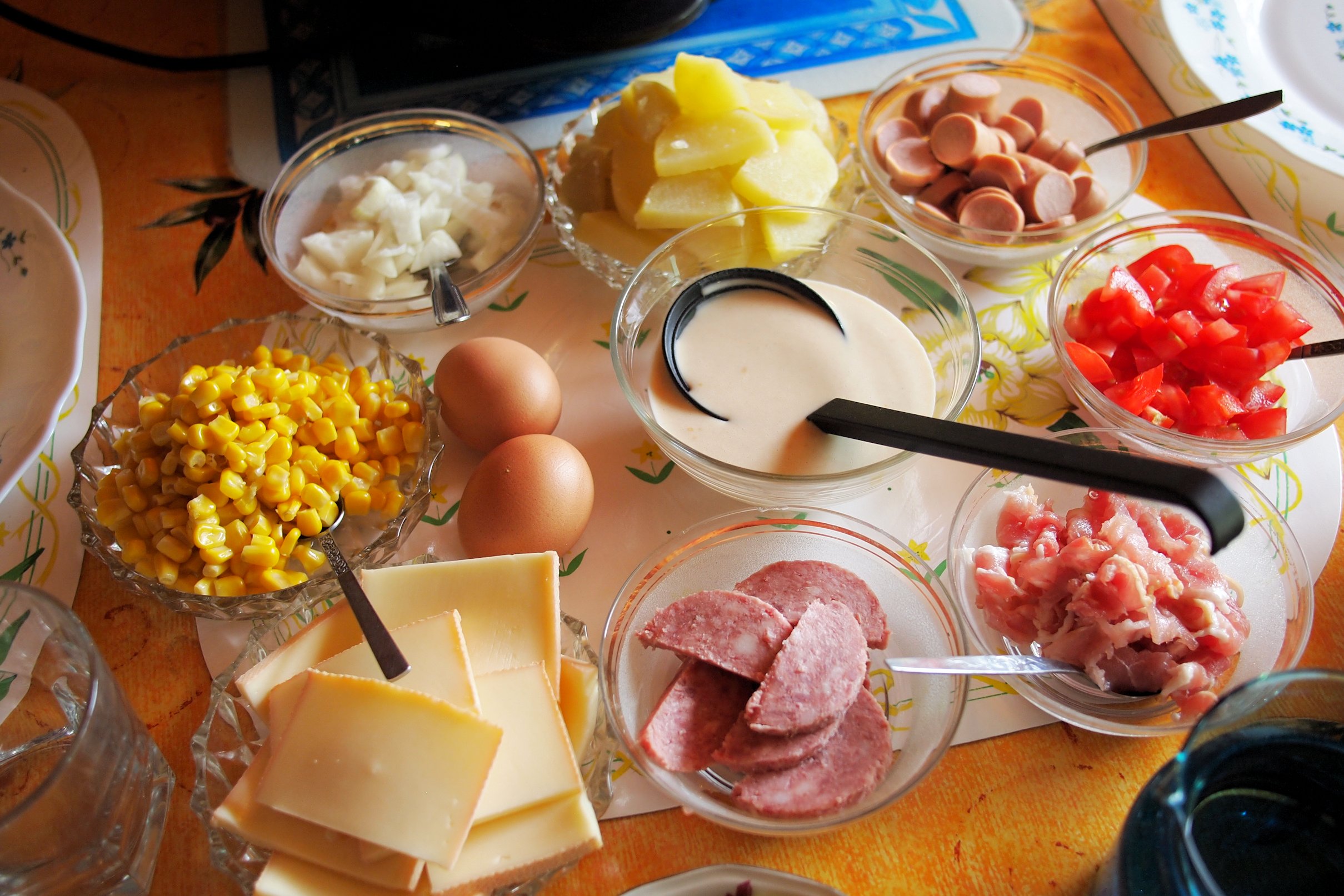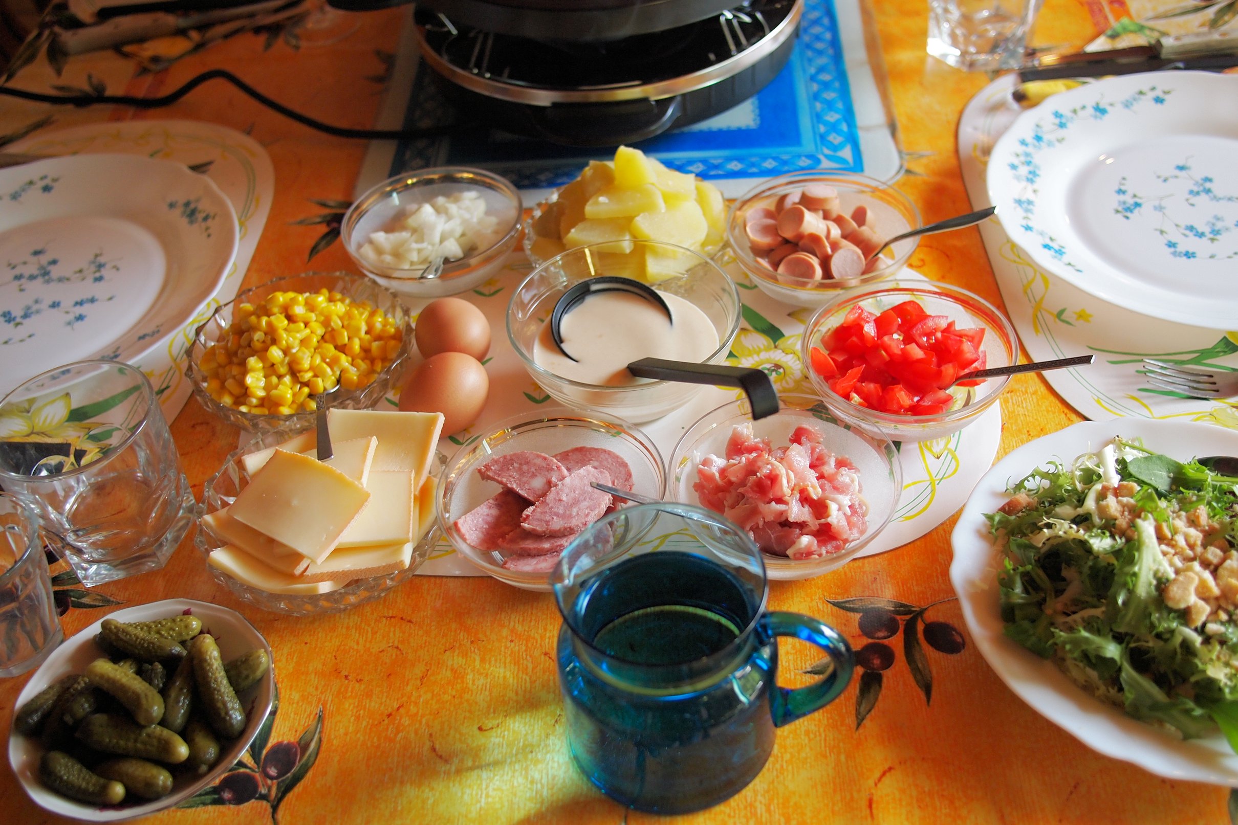 Ingredients for a Raclette and Pancake Party: