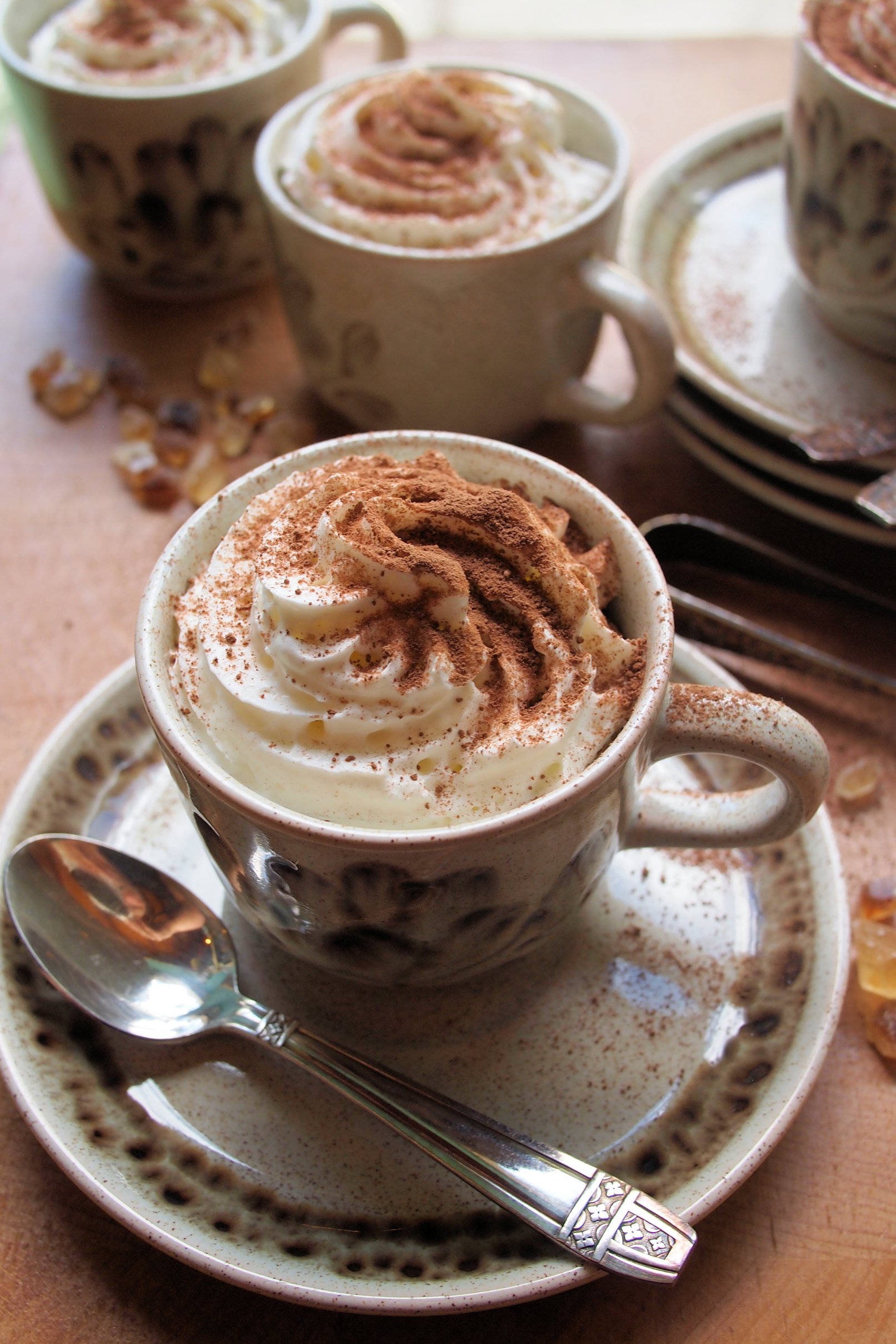 Little Coffee Cup Chocolate-Chip Cakes with Vanilla Cream Froth
