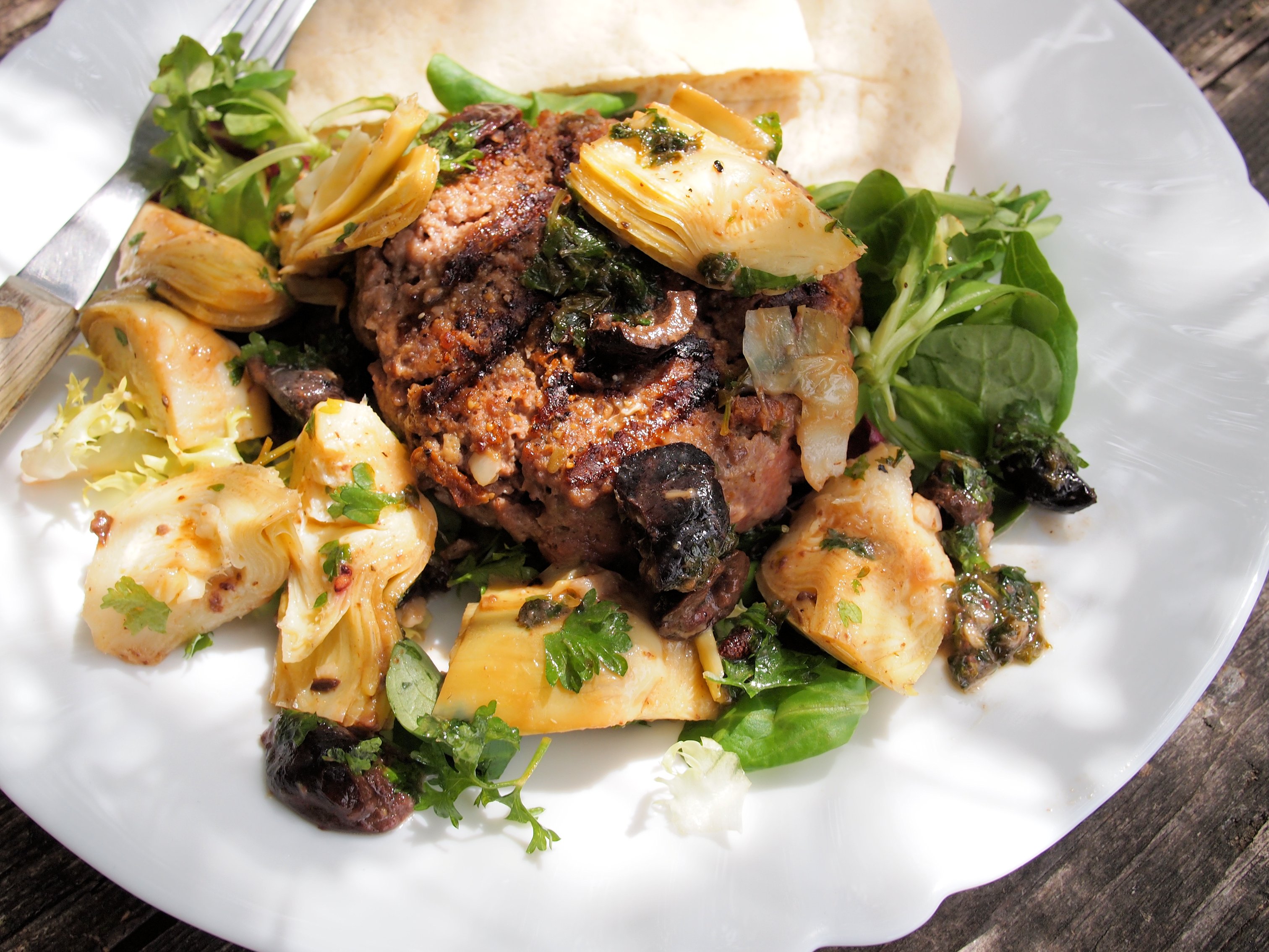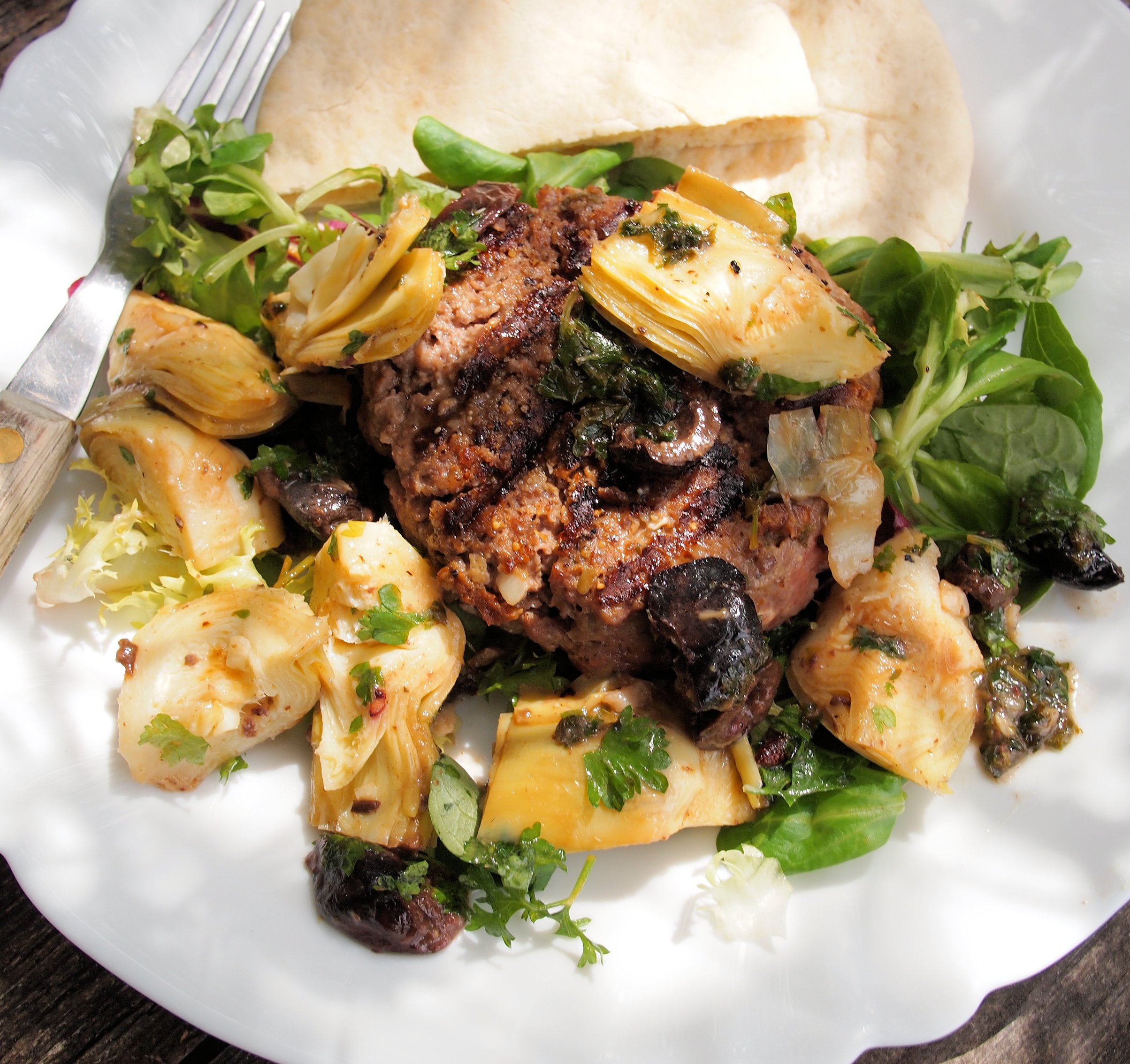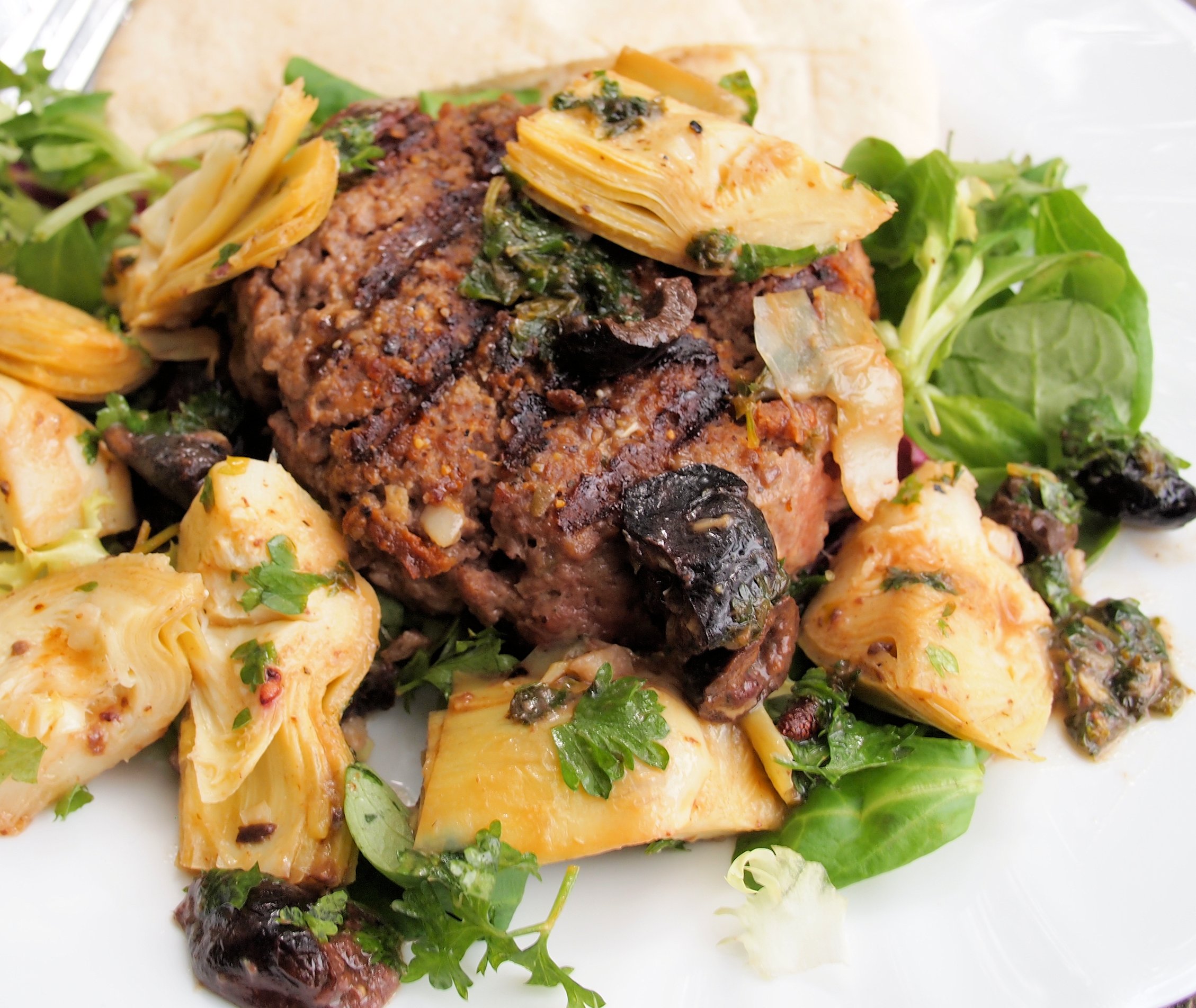 Lunch: Luxury Steak Burger with Artichokes and Olives = 290 cals
