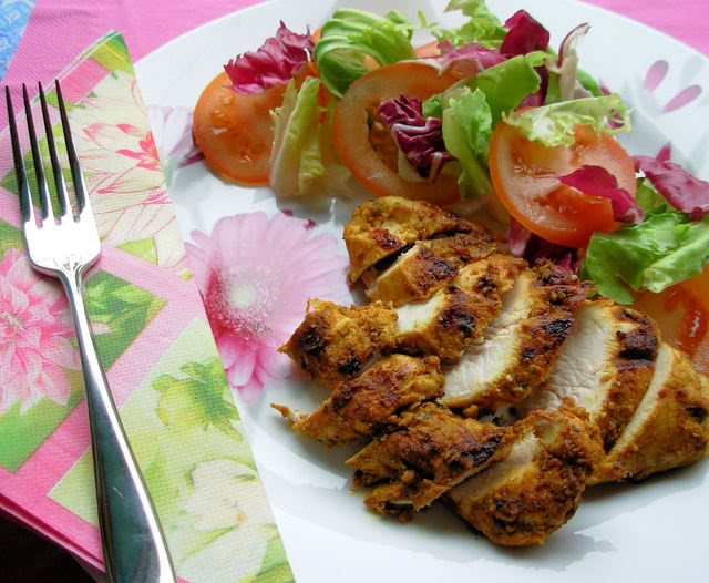 A wonderful way to have the chicken and having strongly flavoured herbs and spices makes a dish so much more satisfying if one is watching portions I think.
