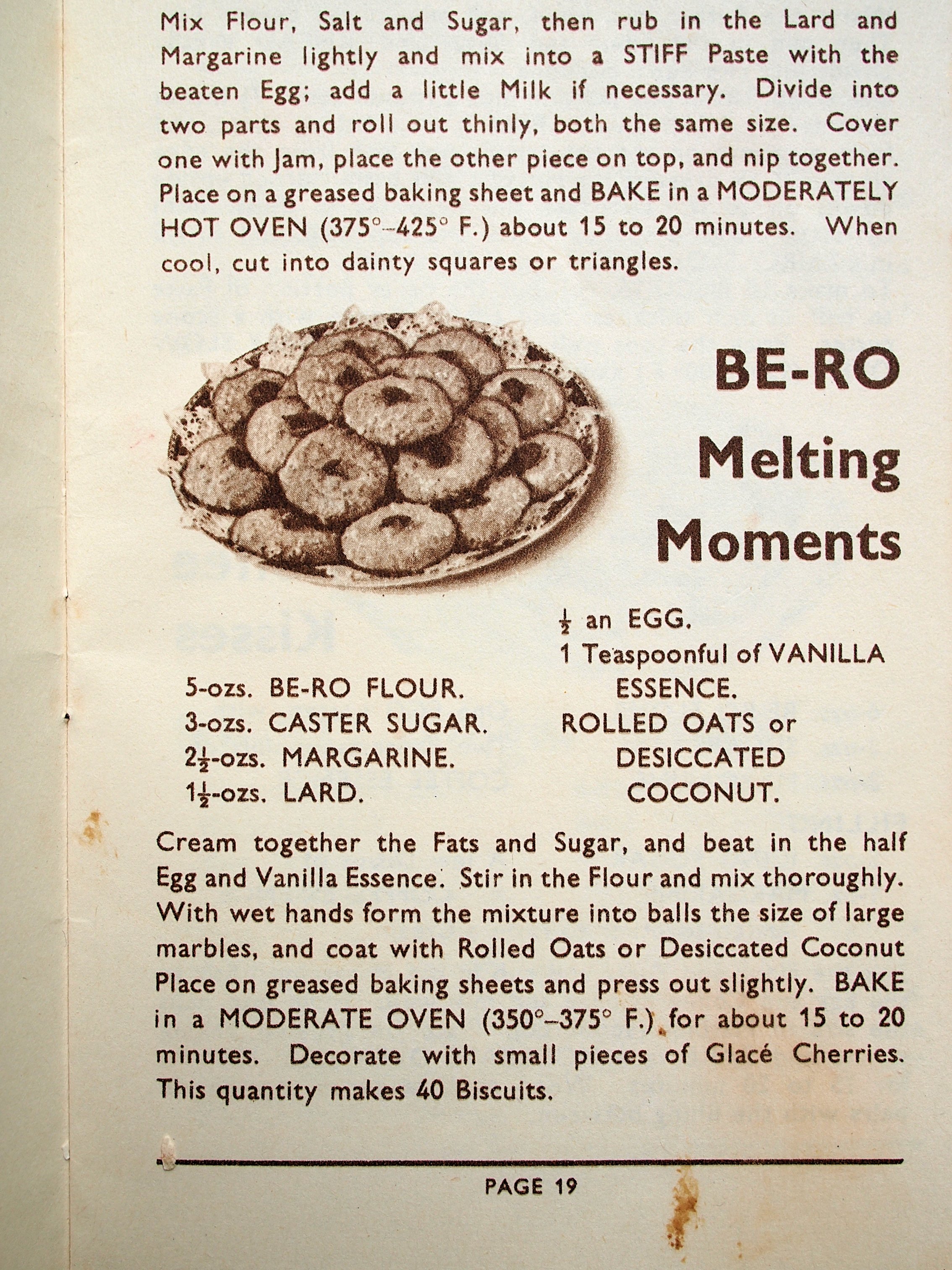 I so missed out on the whole Be Ro thing, but some of the recipes sound rather similar to my mothers 1960s aga cookbook . I haven’t made melting moment for a very long time, but I used to make them from the recipe in that book – yum!