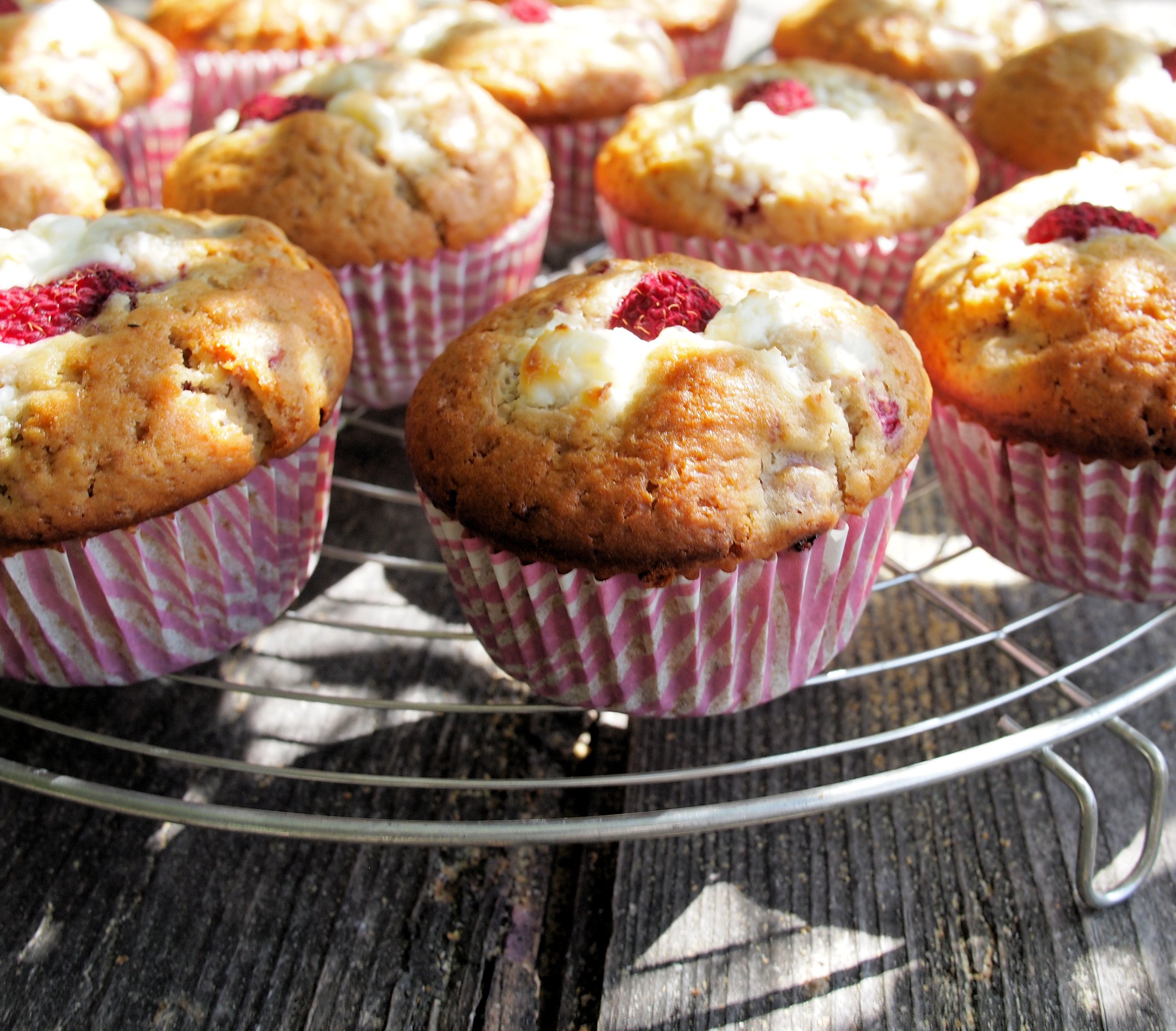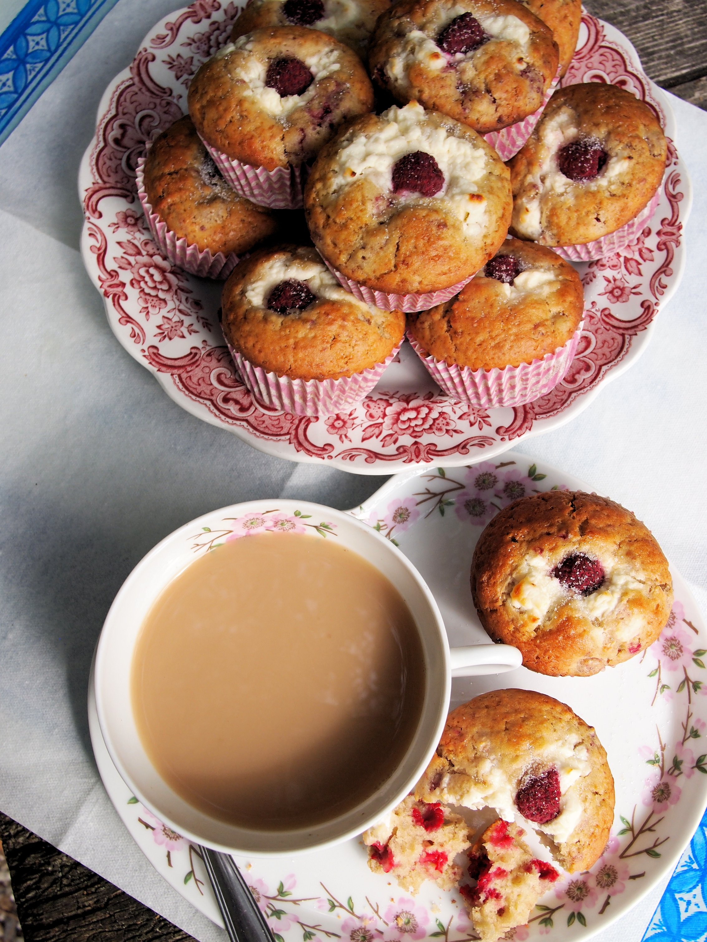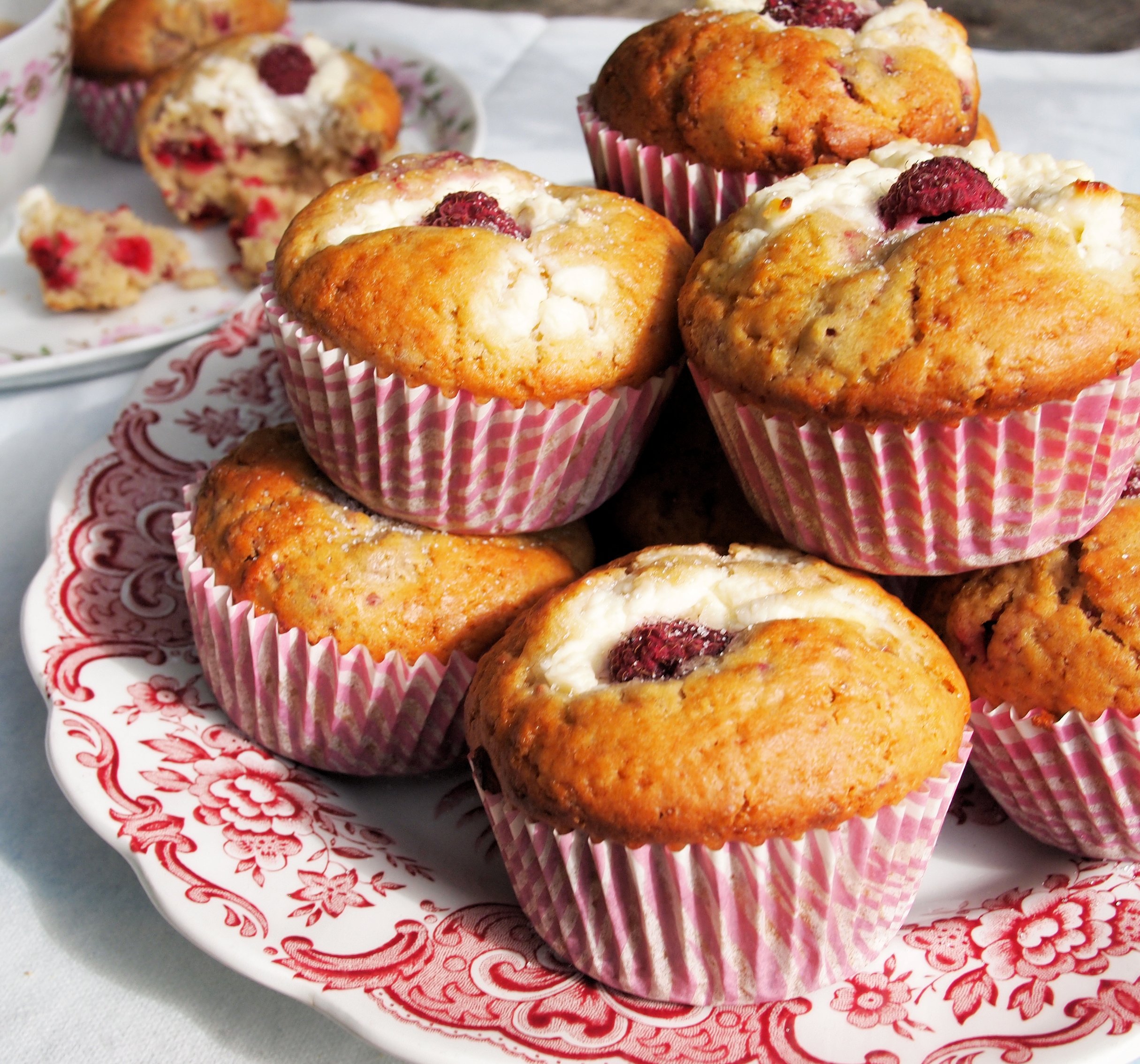 Delicious little buns (muffins) that have fresh raspberries and cream cheese in them, making them almost like a cheesecake cake! Great for school lunch boxes, afternoon tea or for cake stalls; these are on the table in just over half an hour making them an easy treat to bake when time is at a premium.