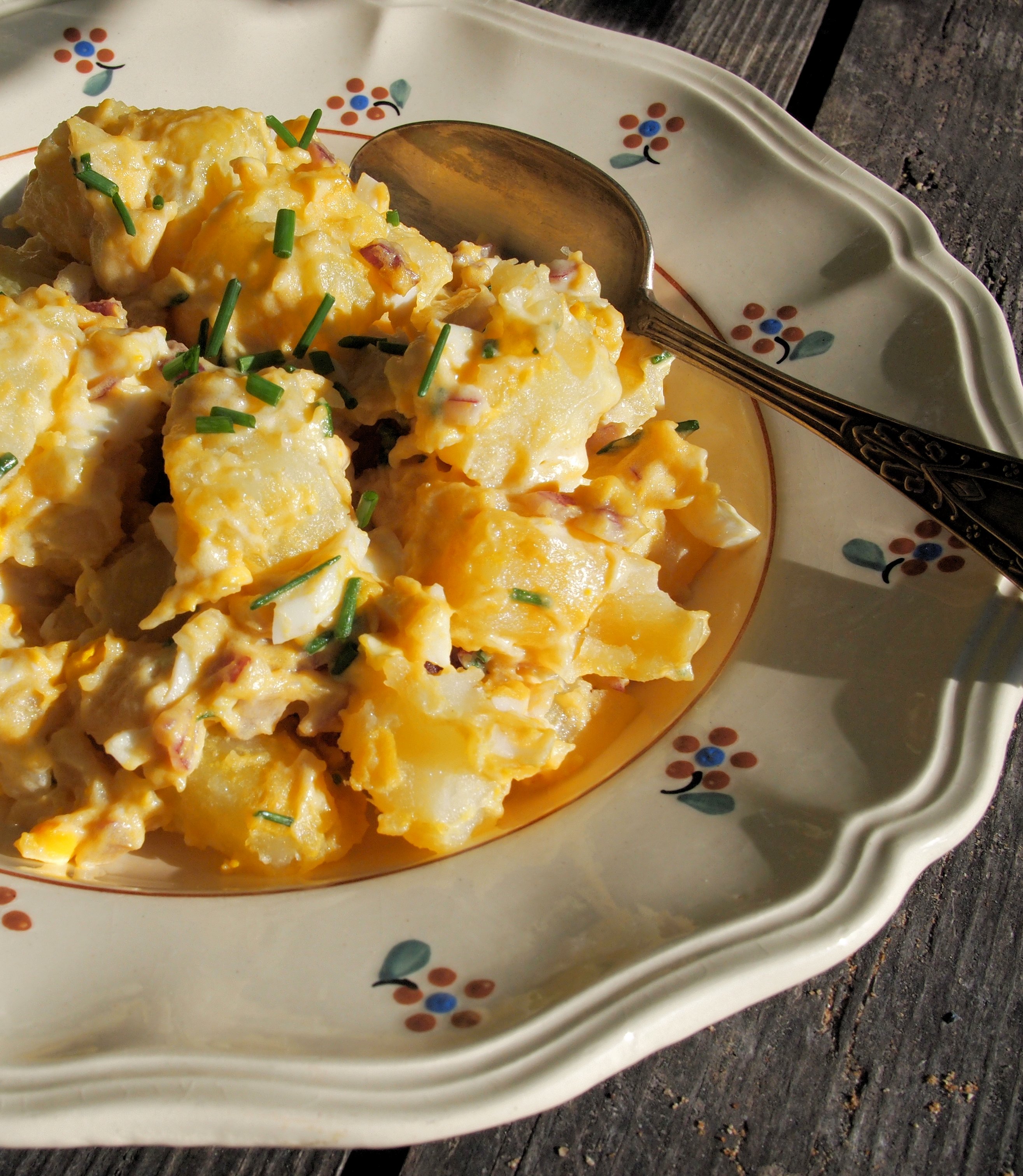 I love your plates, and your rustic potato salad, perfect with some fried chicken.