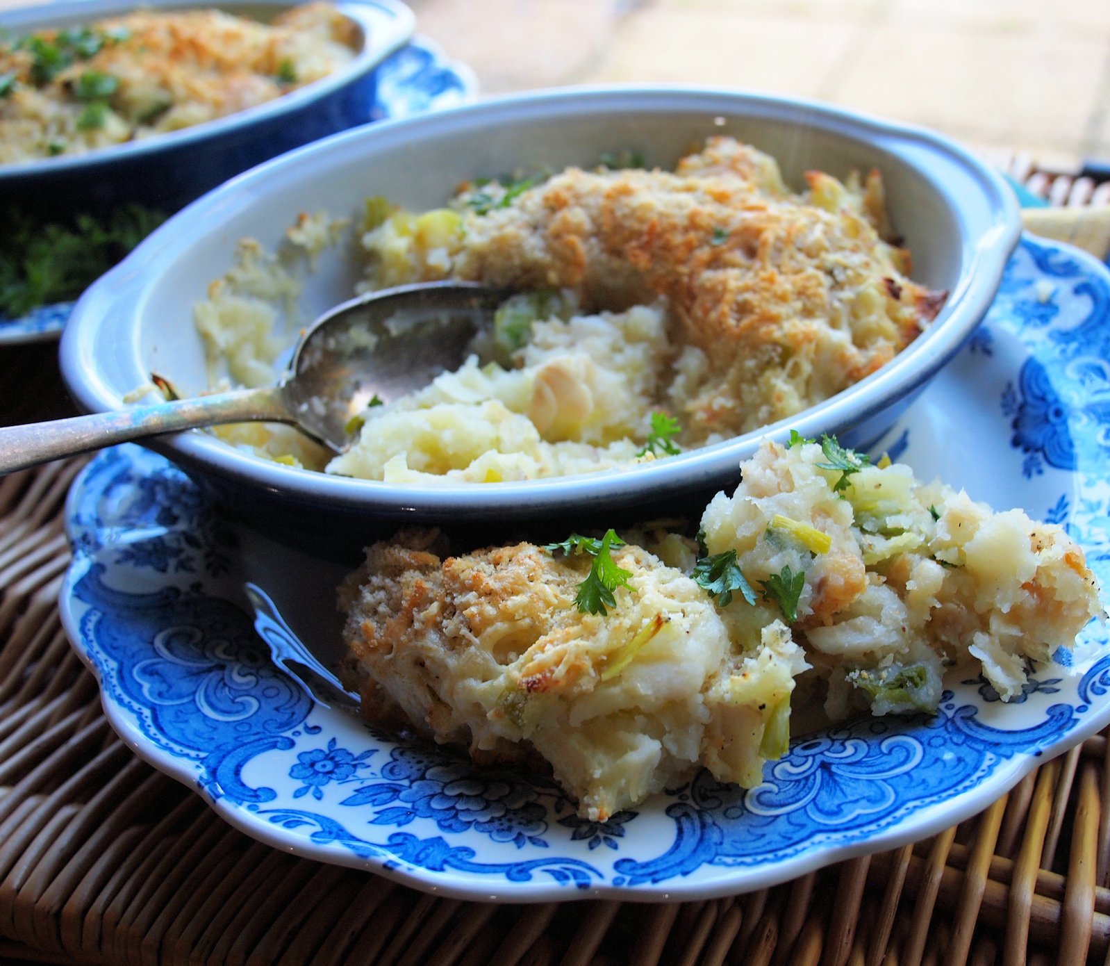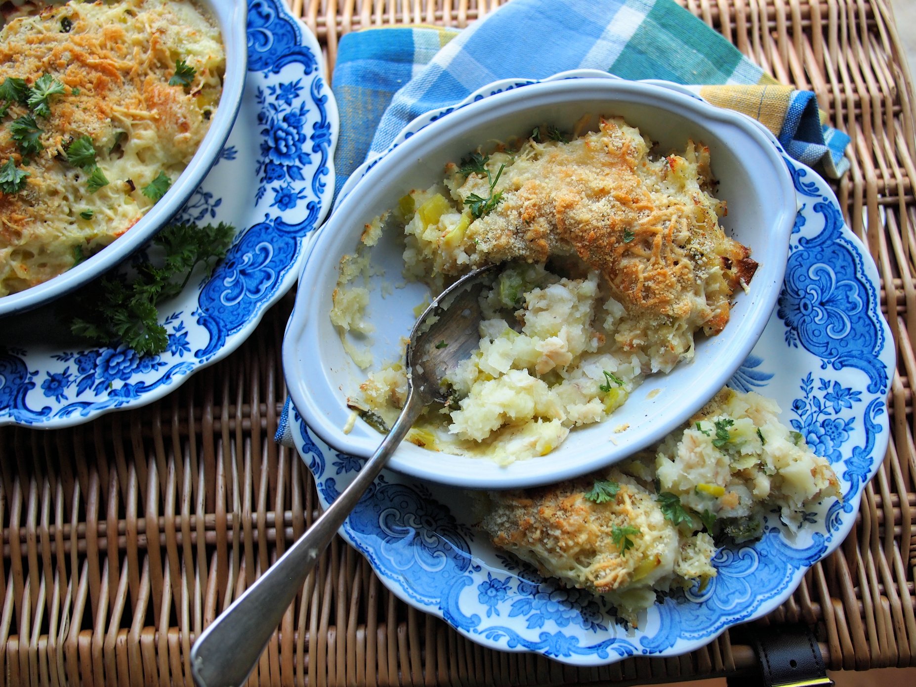 This recipe is the first on a series of special family recipes I am creating, and look out for a wonderful new Giveaway next week, where I will have a box of Family Friendly Fish up for grabs……courtesy of Delish Fish. Although I have suggested smoked haddock in this recipes, do use other fish if you are not keen on smoked fish……such as a mix of smoked haddock and hake maybe, or just cod; however, in my experience, children love the subtle flavour of smoked fish, and the sooner they taste it, the more they will enjoy fish in all recipes and meals – it’s easy to eat and there’s no chewing involved! You can make this in one big family pie dish, or make it in smaller individual ramekins (for the wee ones) and small pie dishes for the adults. There is not need for extra veggies on the side, as there are leeks in this fish pie, but I do love a spoonful of peas or some steamed Savoy cabbage with mine…..it’s up to you.