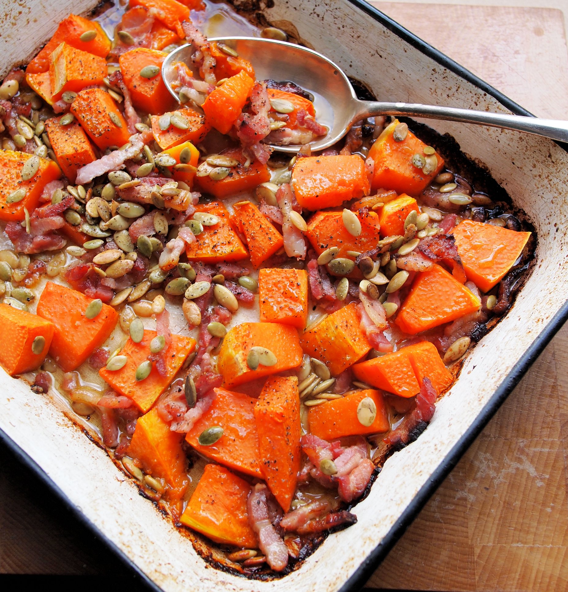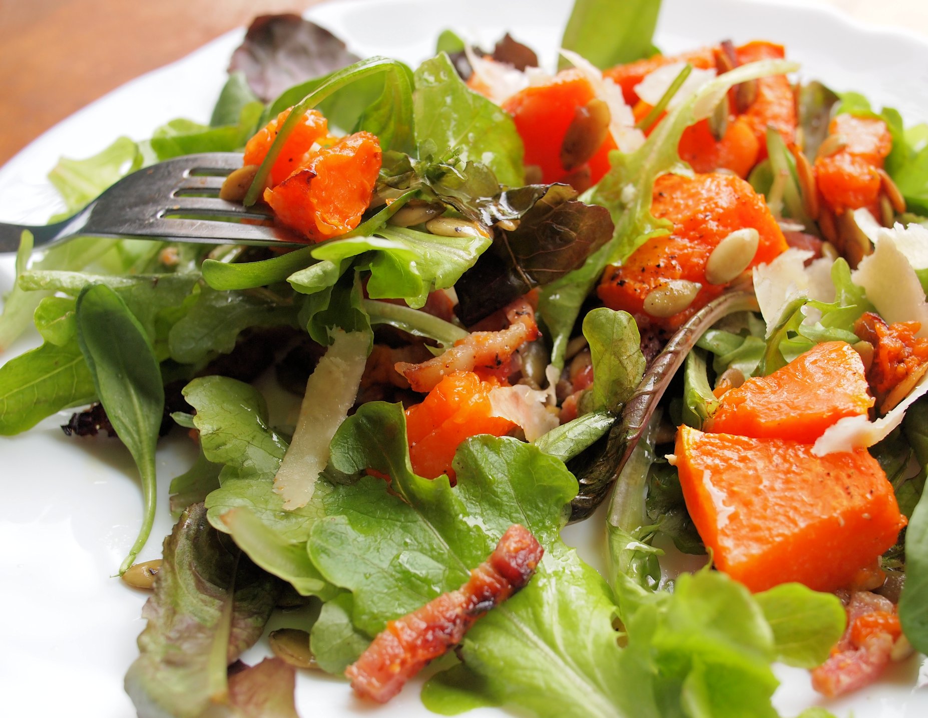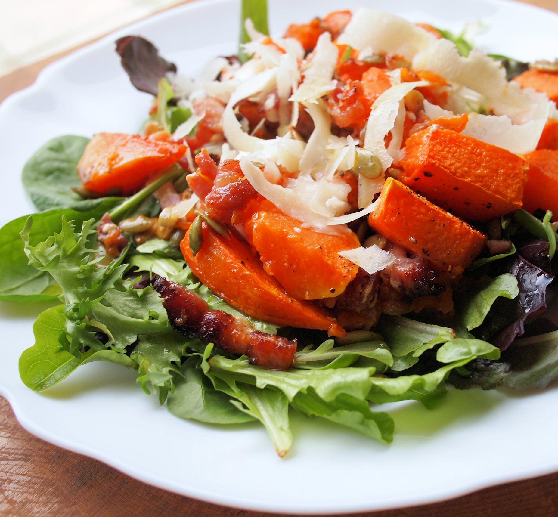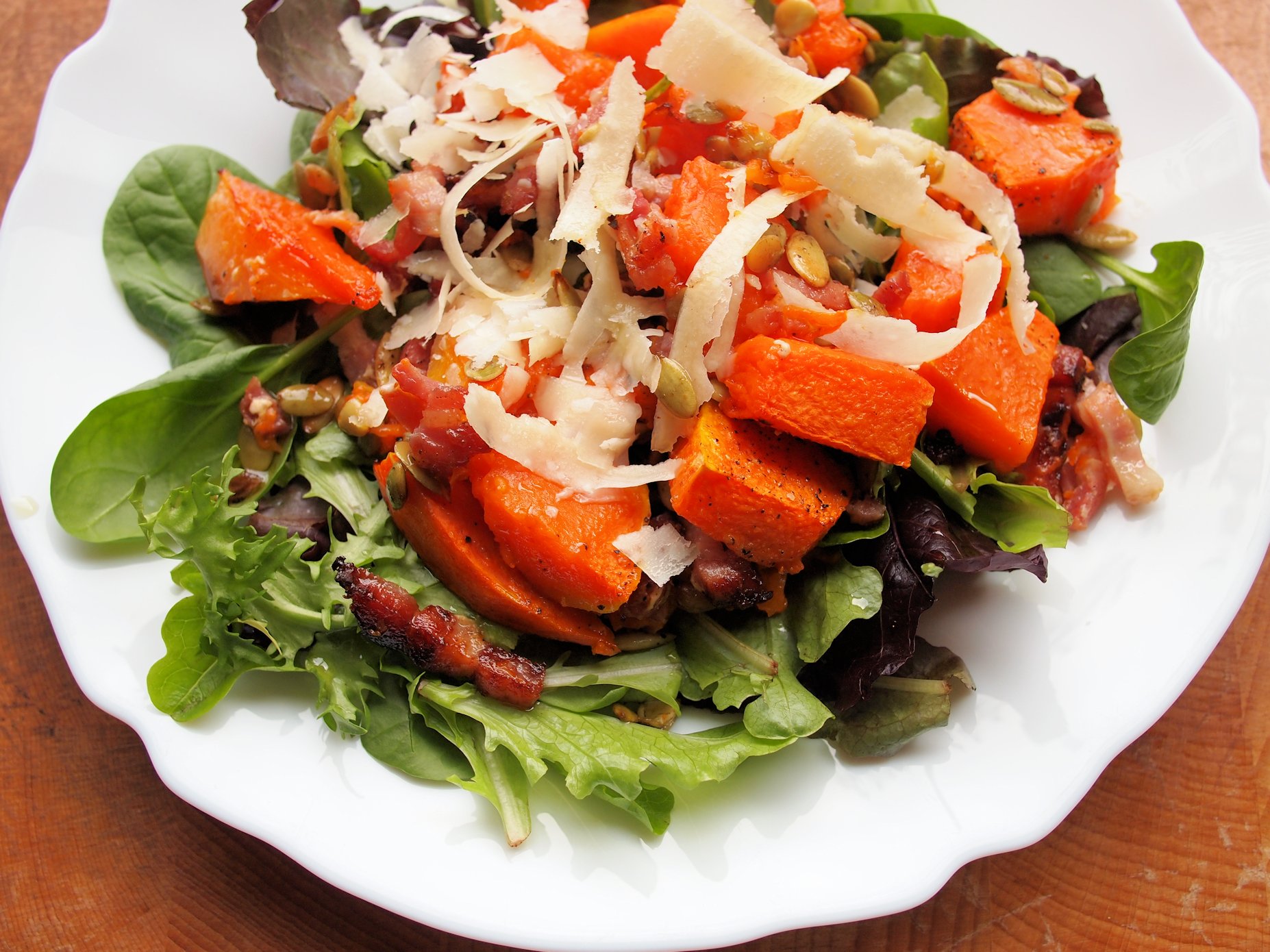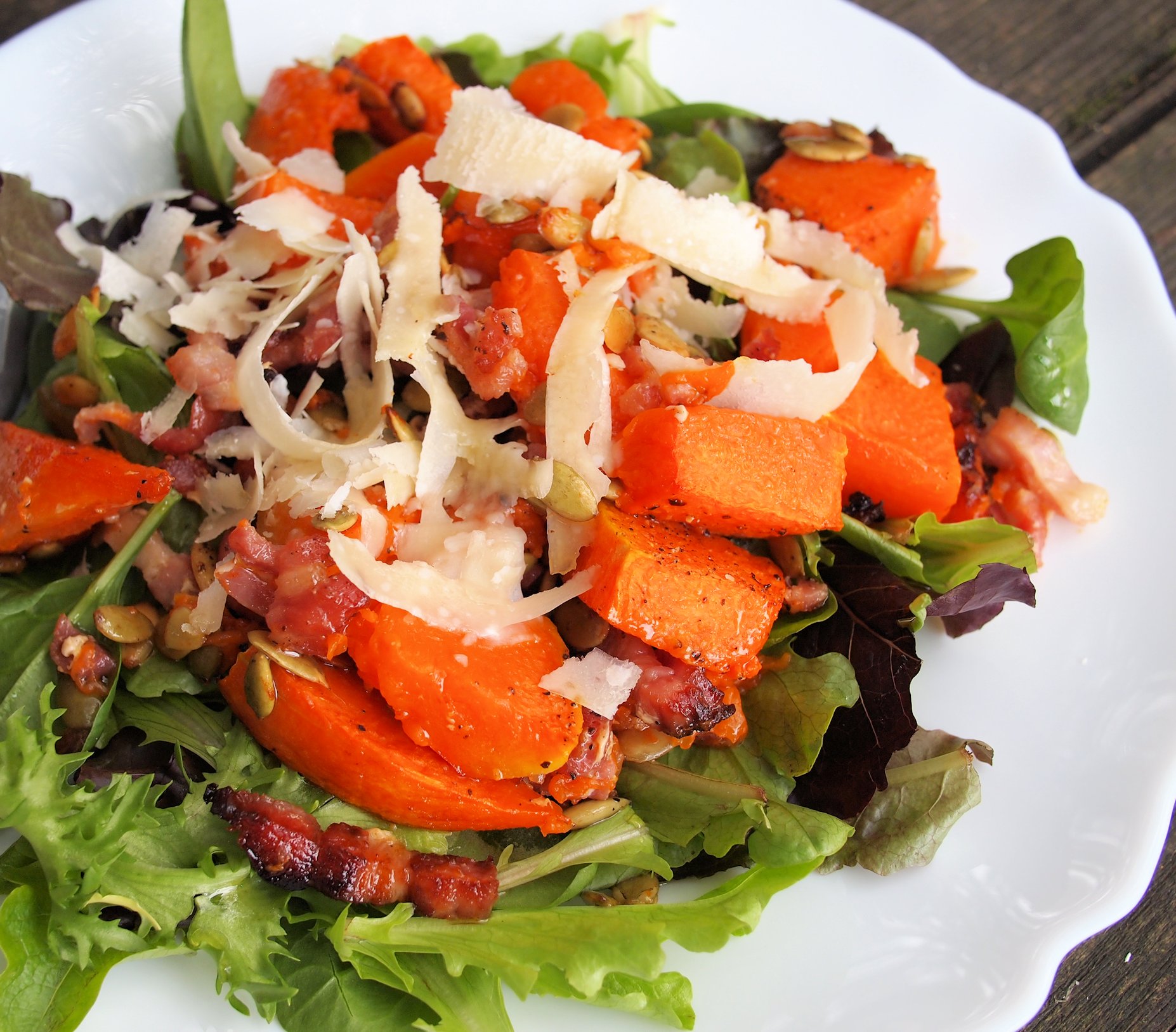 Roast Pumpkin Salad with Pancetta, Grana Padano and Pumpkin Seeds