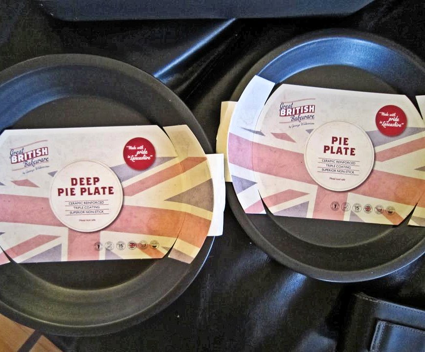 I was lucky enough to receive two pie plates (tins), one a deep pie plate and one slightly smaller, as well as 12 Cup Mini Tart Tray – perfect for mince pies at this time of the year. All three products are from the Great British Bakeware range and are lovingly made in Lancashire, England. The range is made of different pieces of bakeware that all have an amazing non-stick coating, called GlideX. I have copied their press release below, which tells you more about it……..