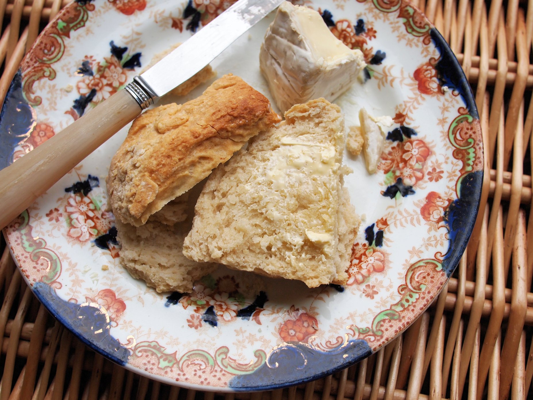 In the recipe given in my book (1920,s) only flour and potato were mentioned. I guess this was probably the result of food shortages in the aftermath of World War 2. Butter wasn’t mentioned at all but I am convinced thrifty housewives of the time would have made do with dripping/suet or lard. For flavour and lightness. [My grandfather tells me that a good butcher was always generous with the trimmings when it cane to large needy families] Plus, the recipe also stated to knead for TEN minutes. Good lord! That equates to bricks……………