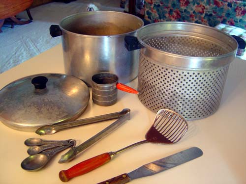 So, in order to conserve fuel and cook a COMPLETE meal on top of my Aga, I have devised a family meal for four to six people that, can be cooked in a multi-layered steamer and comprises a hot steamed pudding, a vegetable accompaniment and a sweet pudding……Scottish Vegetable & Meat Pudding and Spiced Fruit Roll, which, is cooked in an old baked beans tin.