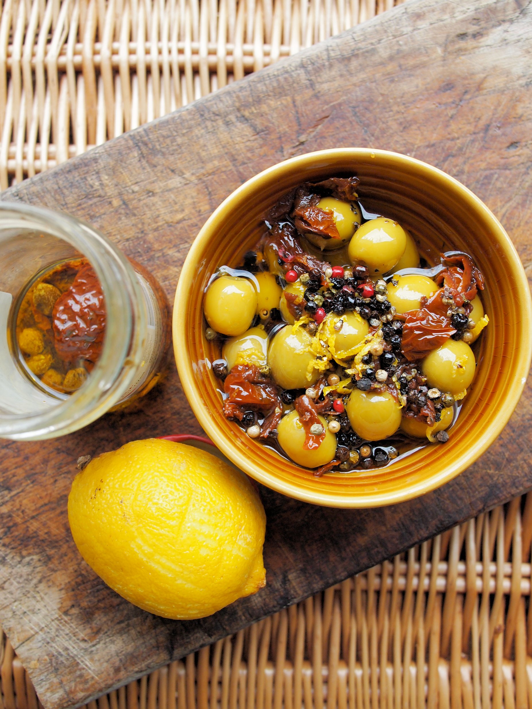Coriander, Lemon and Sun-Dried Tomato Marinade for Olives
