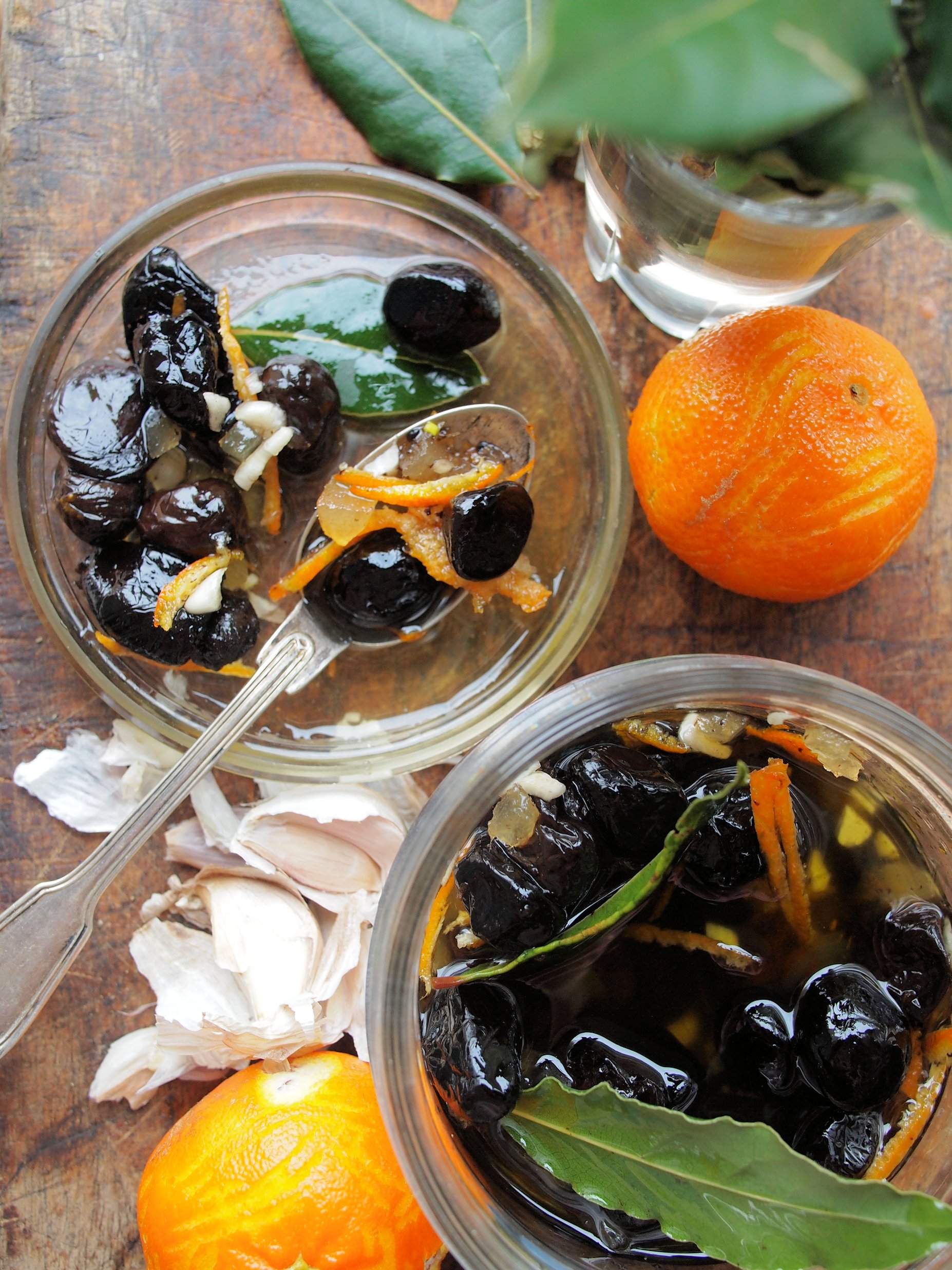 A Duet of Tuneful Olive Marinades with Lemons, Oranges, Herbs & Ginger