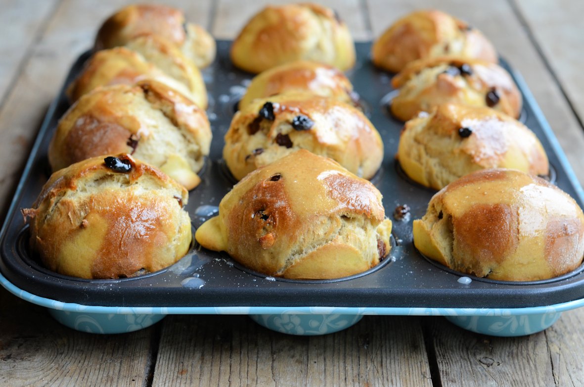 Traditional Hot Cross Buns for Easter in the style of Brioche!