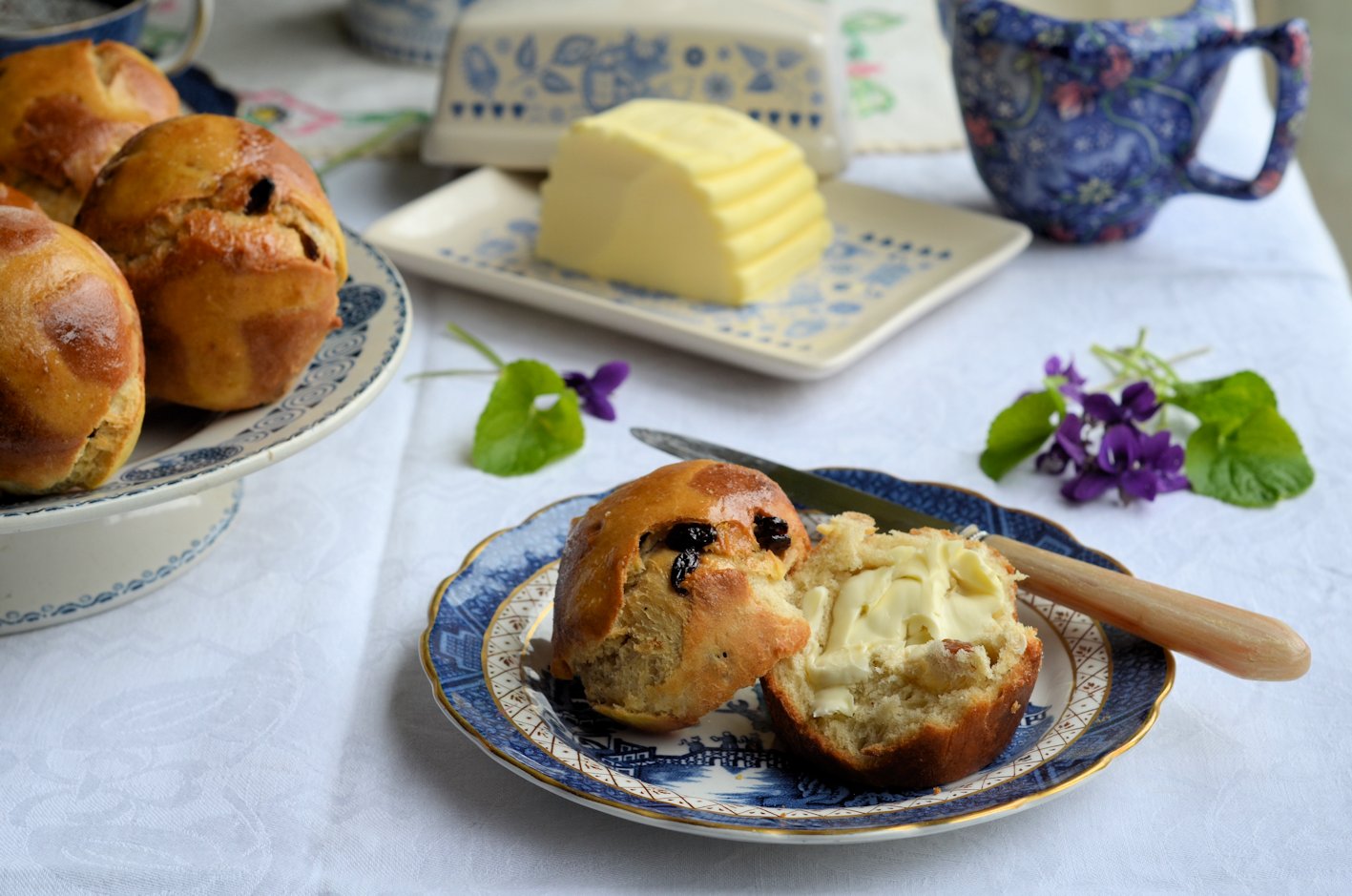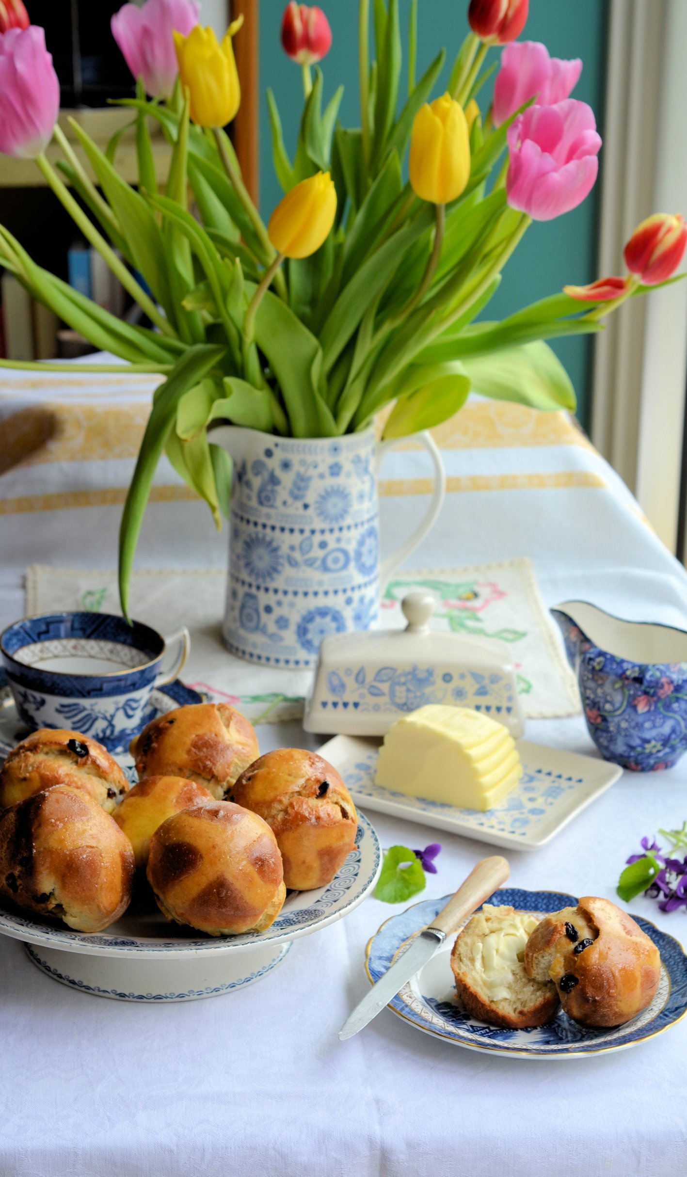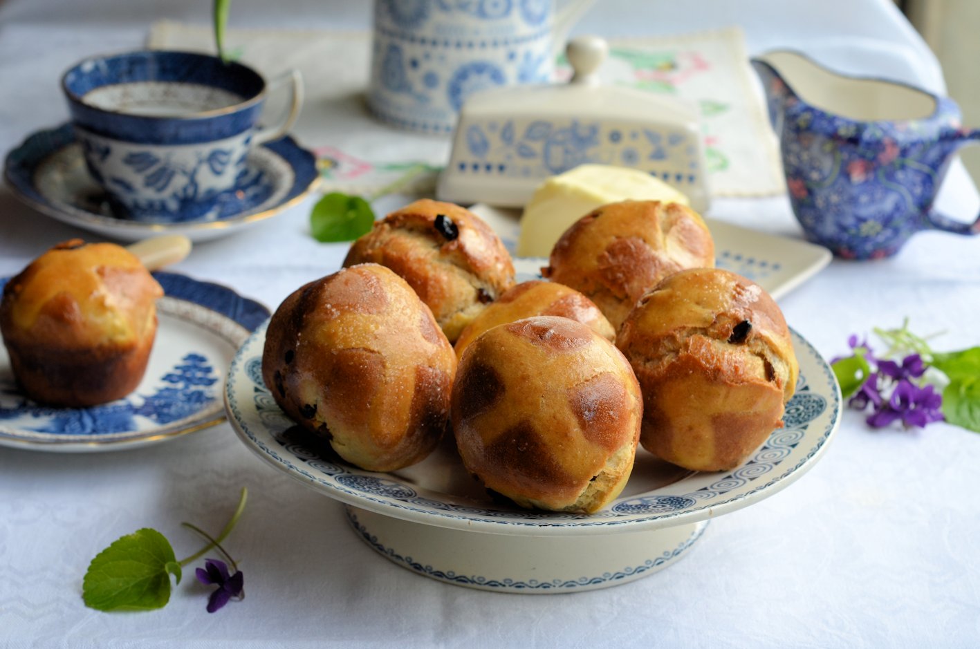 Easter is less than a week away, and my Easter baking has started in earnest with batches of cakes, bread and Hot Cross Buns being made almost daily, some to freeze for next weekend, and the rest to scoff now! Last year, I shared my own (family) recipe for Hot Cross Buns, Baking for Easter: The History of Hot Cross Buns ~ Traditional Hot Cross Buns Recipe ~ and it has proved to be a VERY popular recipe and post, with people all over the world contacting me to say they have made the buns, and how lovely they are……..it’s always nice when that happens, and it is a tangible reminder that many of my readers actually DO make the recipes I post on Lavender and Lovage, which is brilliant, and makes it all worth while. Along with my recipe, which I will share again today, I also shared the history of hot cross buns, which has also proved popular with readers, so, do pop over there if you are interested in the history and folk-lore that surrounds these little spiced and fruited buns.