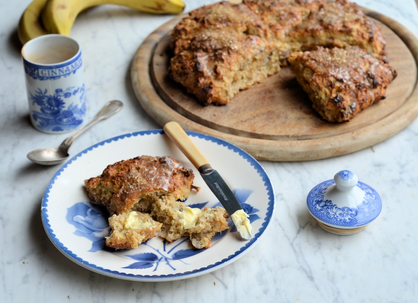 Banana Bread Scones with Brown Sugar Glaze