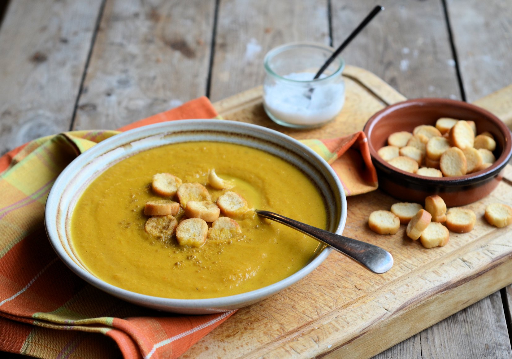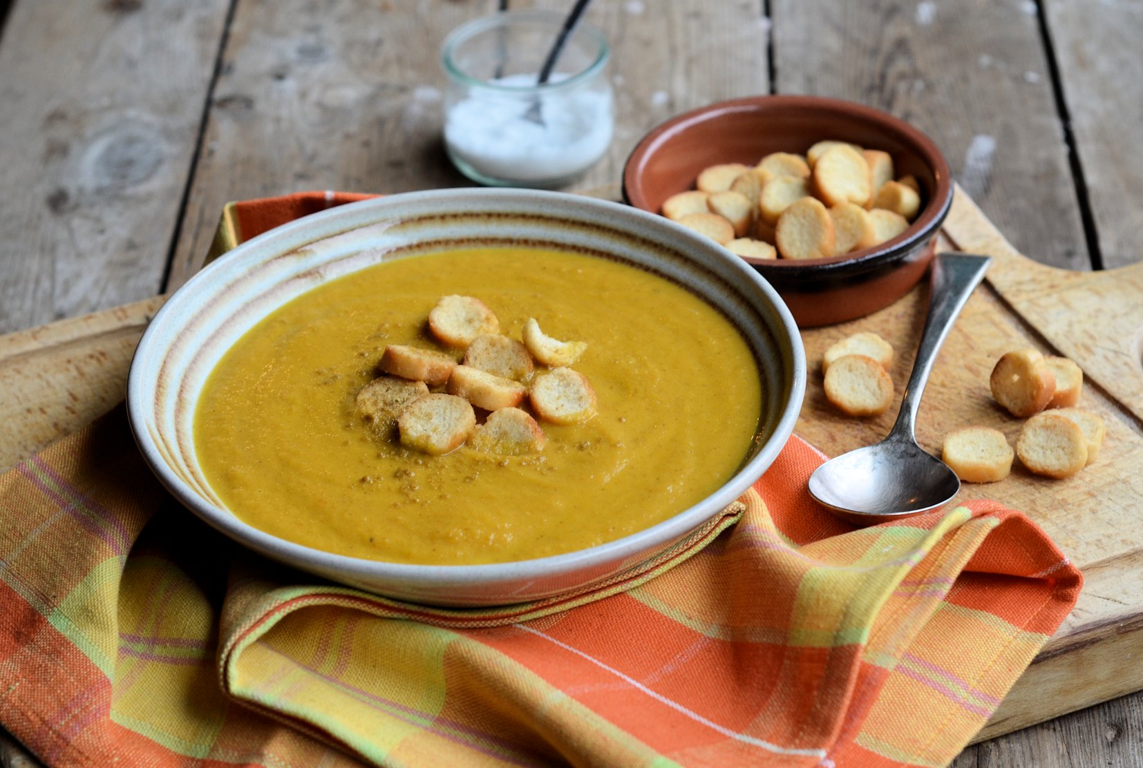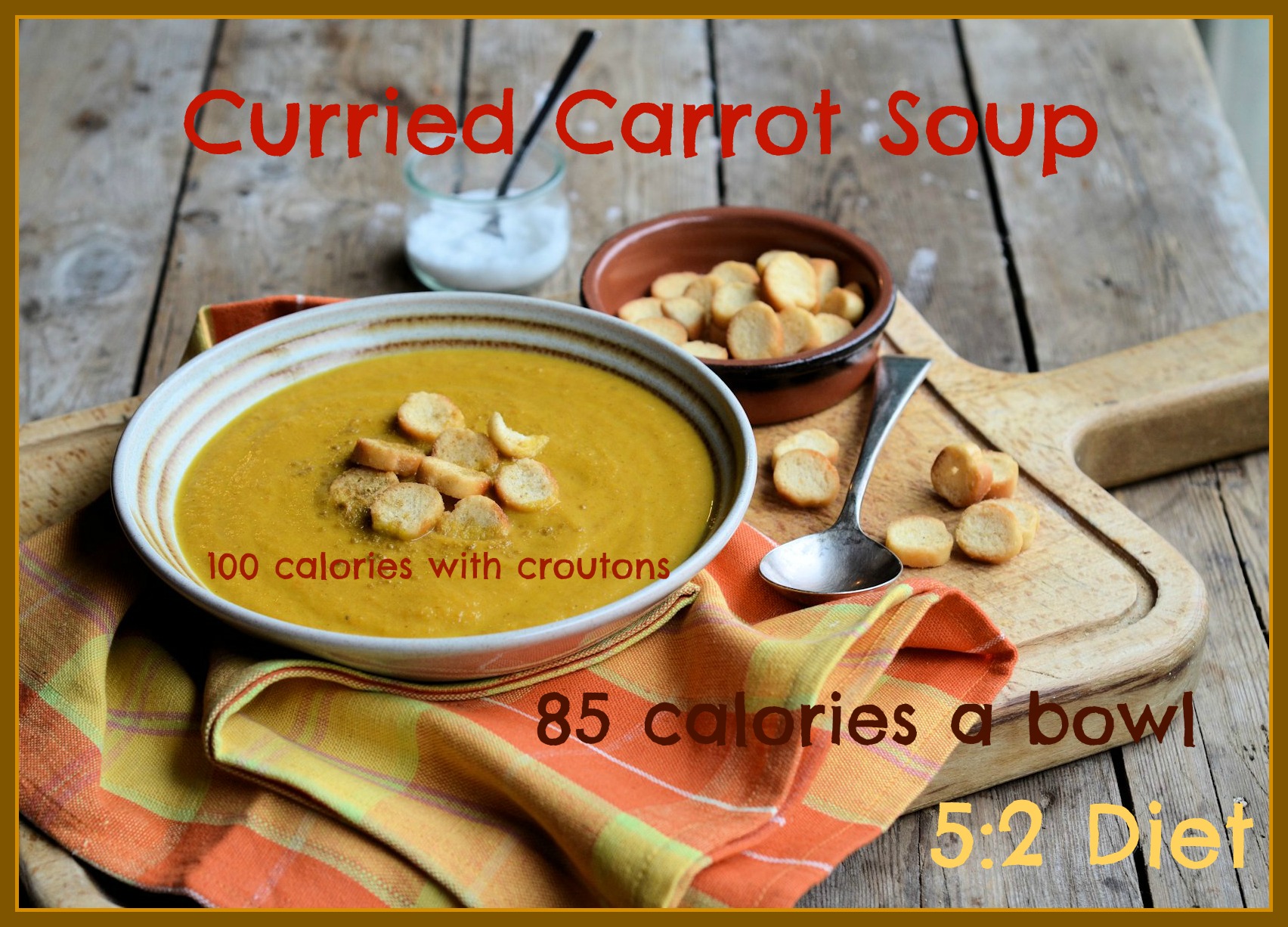 A delicious soup with bags of flavour and yet each bowl is only 85 calories. (Or 100 calories with the croutons) Carrots, onions and garlic are gently simmered with vegetable stock and curry powder for a hearty soup with a spicy Indian flavour. Perfect for those on the 5:2 Diet on fast days, or for anyone watching their calories intake.