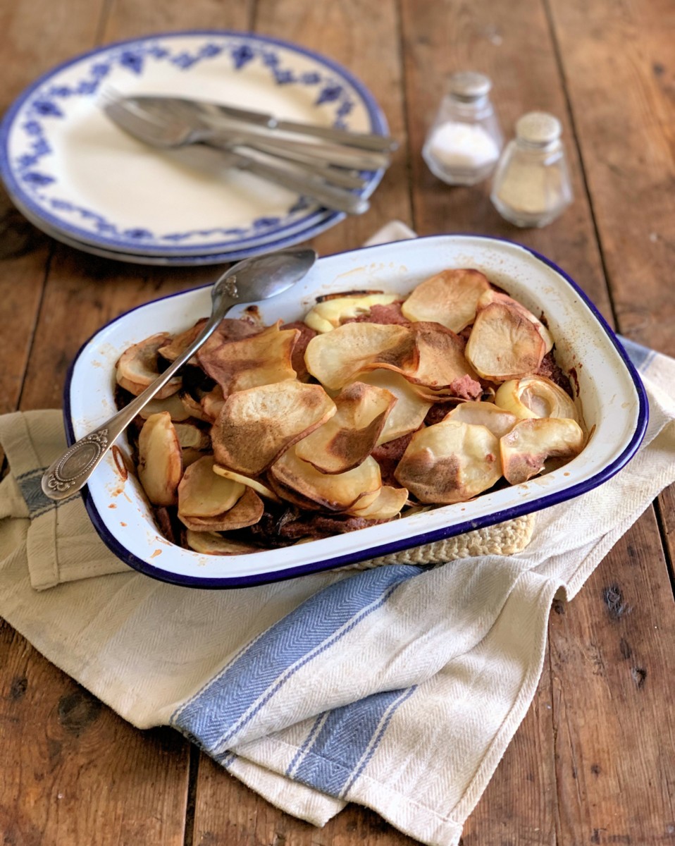 It may be a surprise to learn that this humble dish is made with only FOUR ingredients, potatoes, onions, tinned corned beef and an Oxo cube, making it a fabulous, low-cost meal for all the family.
